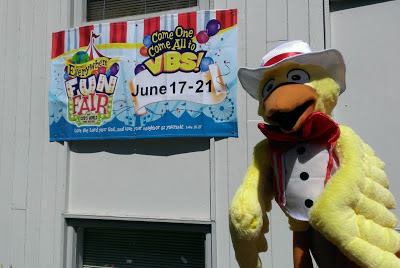 enjoying some sun when he spotted the Vacation Bible School sign on the